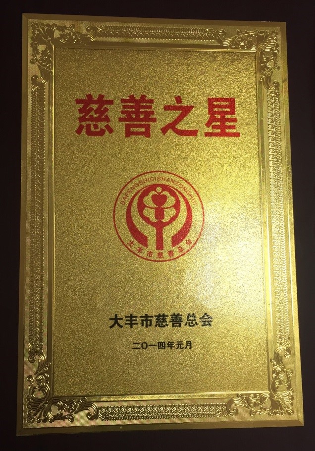 ◆2014年公司被大丰慈善总会评为慈善之星